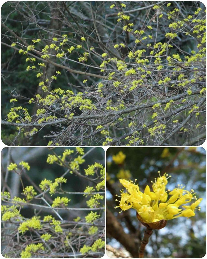サンシュユはミズキ目ミズキ科、中国原産の落葉小高木。春先に葉が出る前に黄色い花を咲かせ、秋にグミに似た赤い実をつける。季語は春。 山茱萸(サンシュユ)は漢名(中国植物名)で、この音読みが和名の由来。日本名の別名ハルコガネバナ(春黄金花)は、早春に葉がつく前に木一面に黄色の花をつけることからついた。秋のグミのような赤い実を珊瑚に例えてアキサンゴとも呼ばれる。