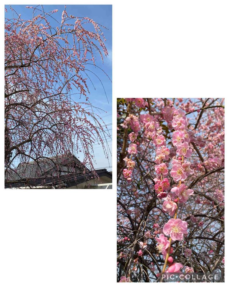 3/1畑にて。枝垂れ紅梅が綺麗に咲きました😆