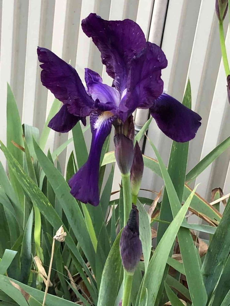 『ジャーマンアイリスは1本の花茎が枝分かれみたいな感じになってたくさん花が咲きます。葉っぱはアヤメ達とは全然違います。』
