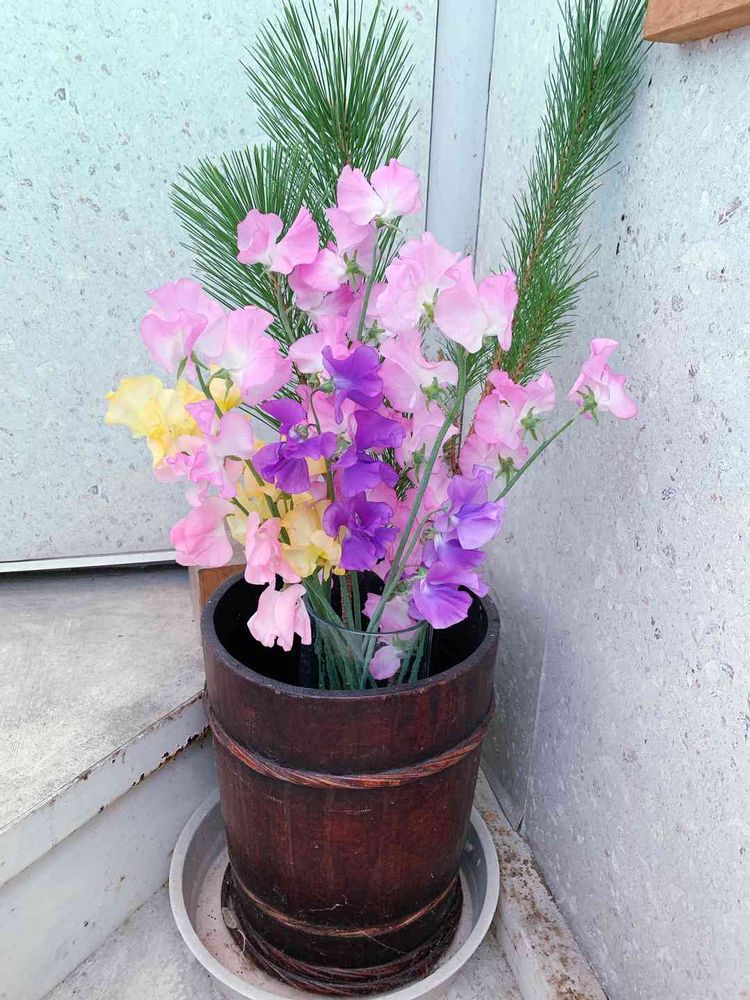スイートピーと松。