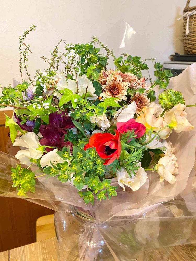 昨日のレッスンはアネモネのブーケでした。アネモネがひらくともっとゴージャスになるでしょうね。