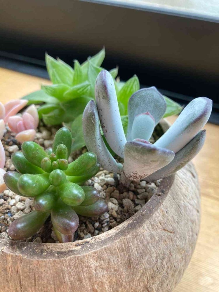 私の植中毒を見ていた娘が、多肉植物を育てると言い出し、散々迷って寄せ植えを作りました。ちゃんとお世話できるかしらん💦