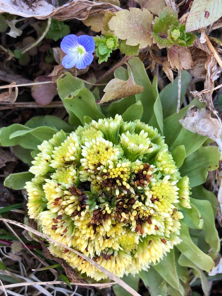 冬の山野には、まだ花もなく、下山した道端に春発見😊