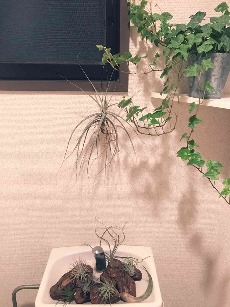 トイレに緑をと嫁から言われて、調子悪くなったらすぐ引き上げるつもりで置いたティランジア。