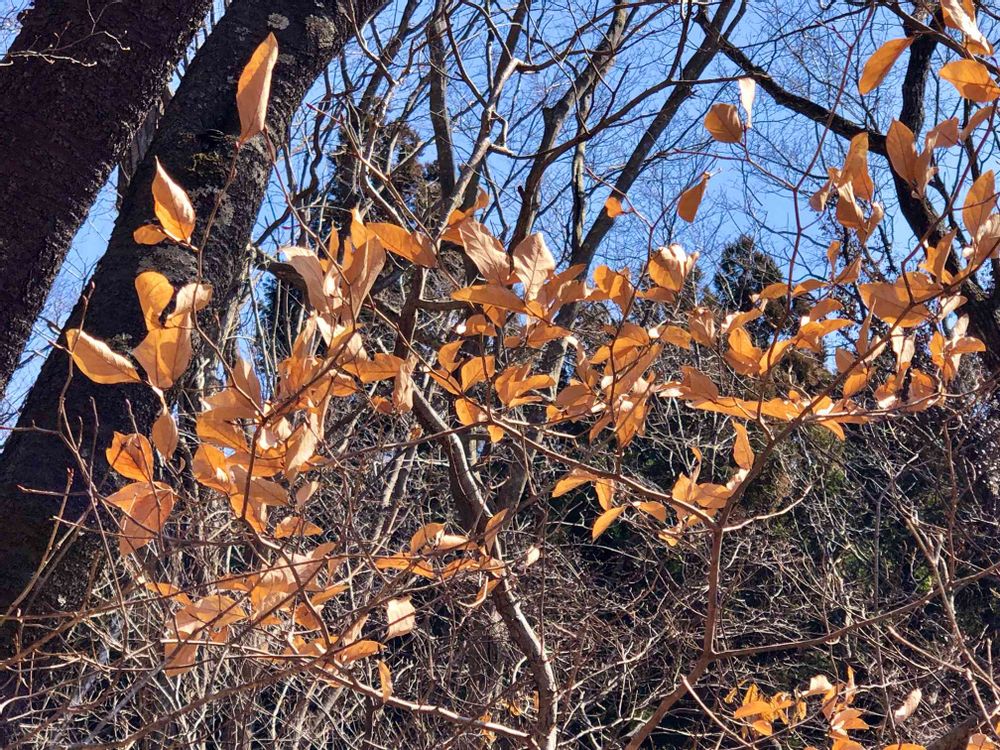 冬山を歩いていると、木々は皆葉を落としているなかに、チラホラと枯れた葉をしっかりと付けたままの木が点在してます。