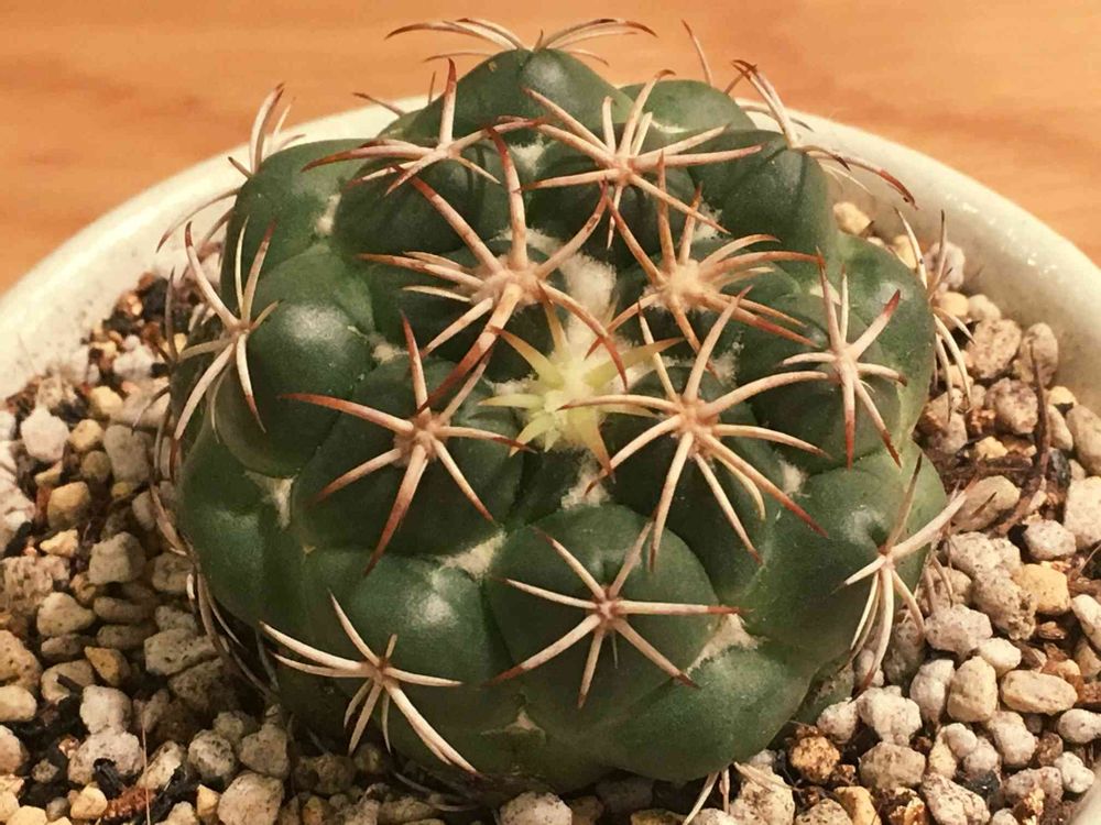 真ん中の薄い黄緑の棘は新しい棘なのかな?白い綿毛がところどころモコモコ生えてる所もトゲトゲとのギャップで可愛らしいな🌵