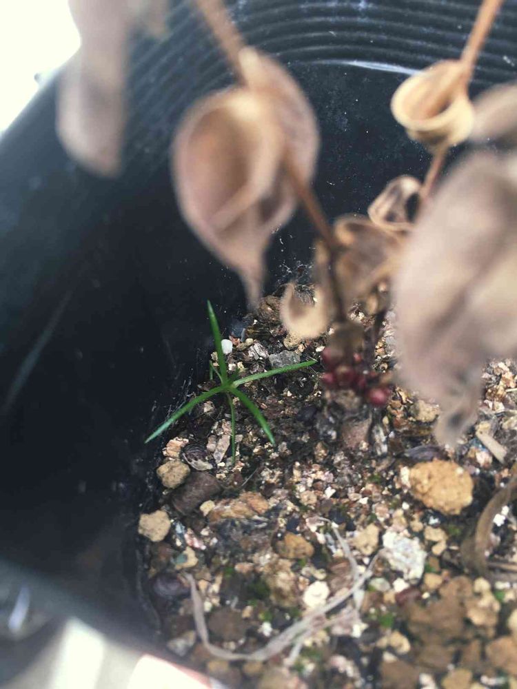 実生一年が終わり、枝は全部枯れましたが、残った茎は少し太くなりました。