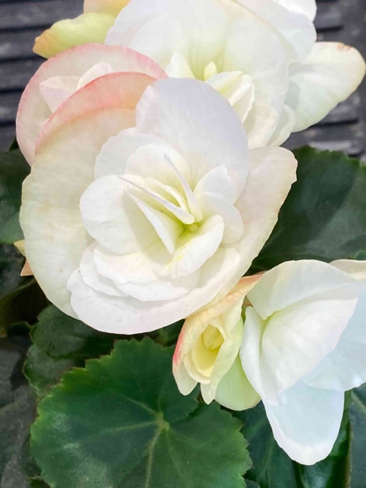 花屋さんの店頭で白い花びらの外縁部(の所々に)にうっすらと紅色が混じる花を見つけました。「リーガース・ベゴニア」です。別名「エラチオール・ベゴニア」。シュウカイドウ科ベゴニア属で、南米熱帯高地原産のベゴニア・ソコトラナとアラビア半島原産の球根ベゴニアの交配種。花名は、この花の品種改良に尽力したドイツの育種家オットー・リーガーに由来。
