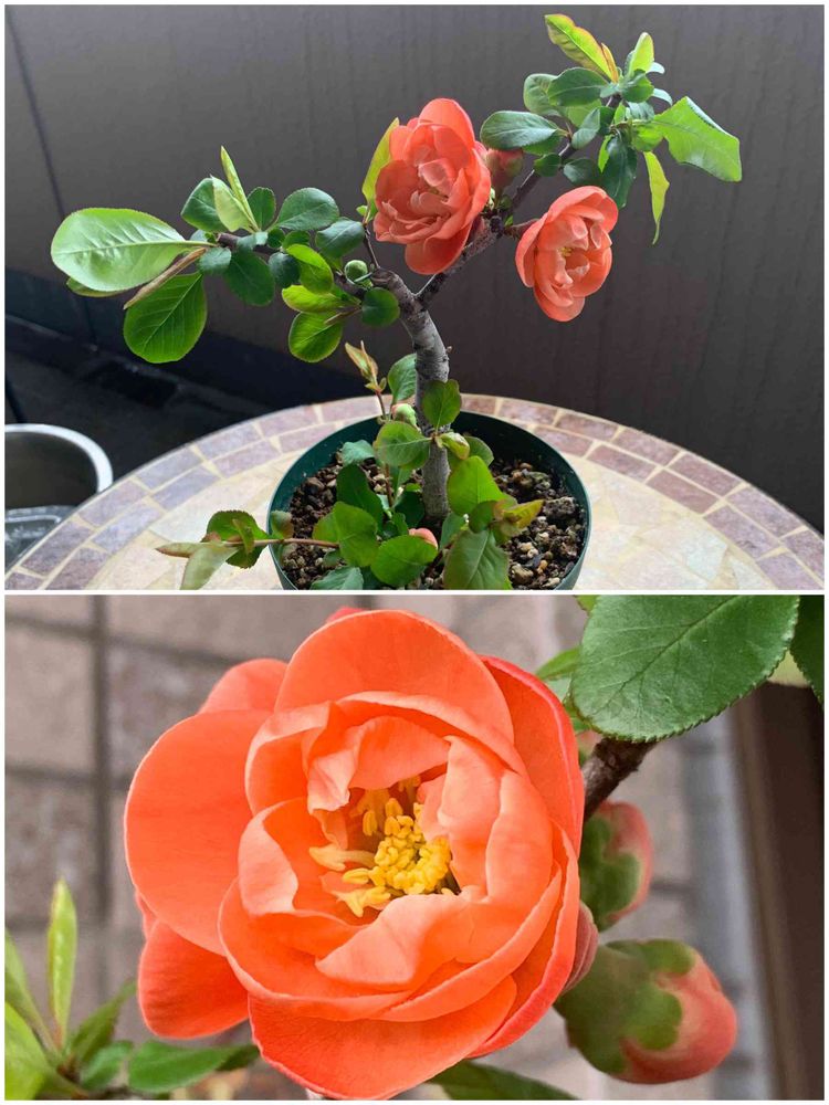 こんにちは😊🌱わぁ😃❤️いいですね😉🌸ボケの盆栽🌱うちのは二年目が咲かずです😂😂😂でも新芽がたくさん出てきたので、来年こそは咲かせたい😆✨✨