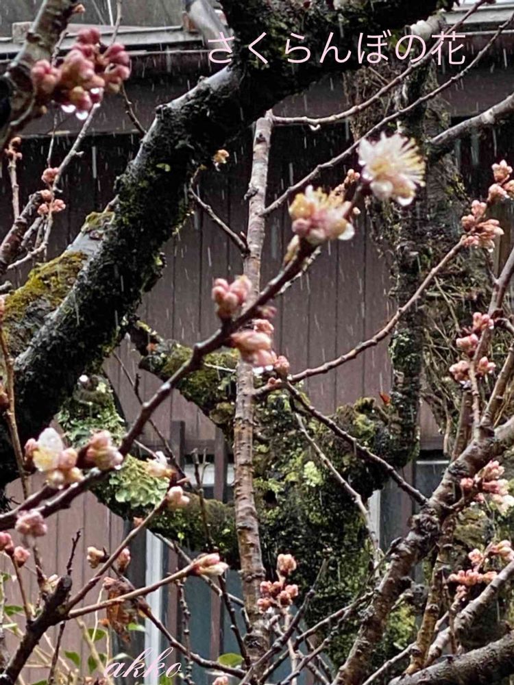 雨の中、さくらんぼ🍒の花が咲いてきました❣️