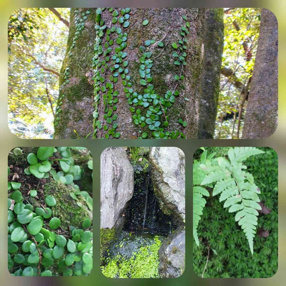 木や岩を這うマメヅタ、湧き水が流れ シダや苔を育くみます💚