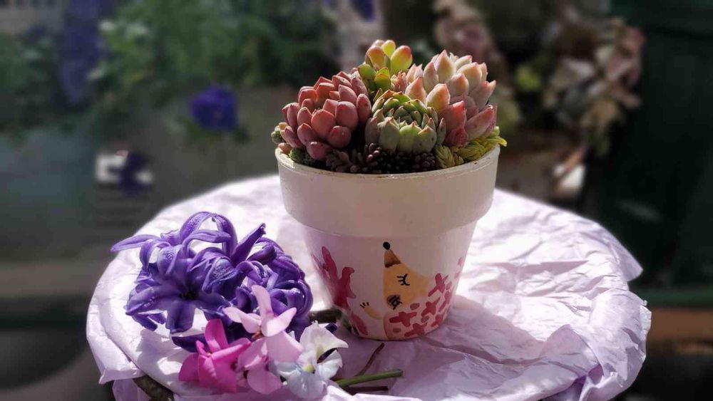 お花はヒヤシンス・原種シクラメン・ビオラ