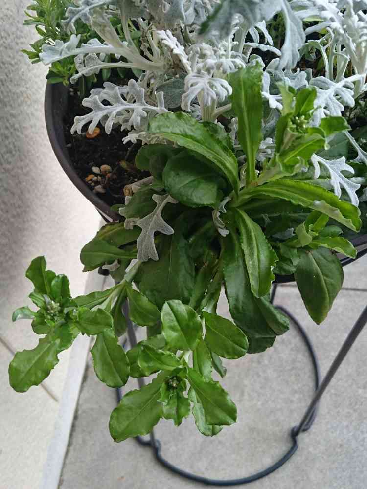 シロタエギクの横に出てきて、葉っぱが可愛いので見守ってきたのですが、今日見ると蕾が。