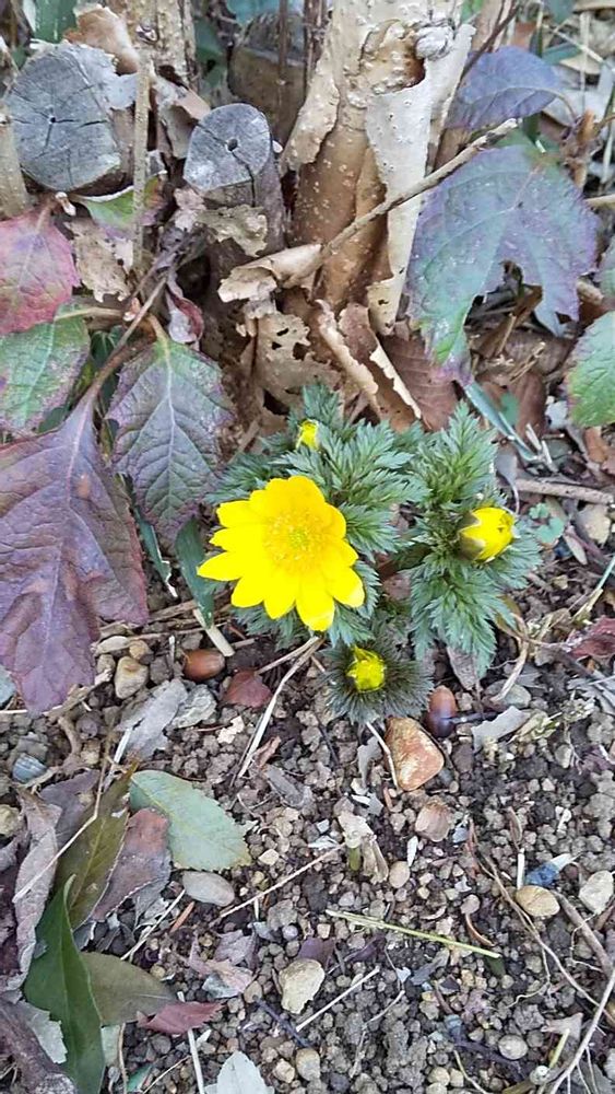 写真は、勿忘草に負けないくらい可愛い福寿草✨