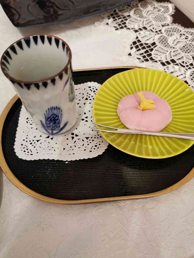 有田焼を買ったお店で、お茶(アールグレイティー)をいただきました。和菓子付で。🥰