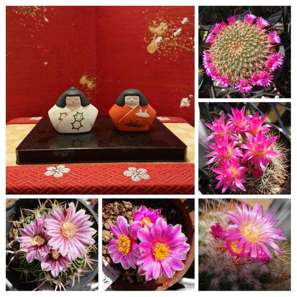 今日はひな祭りなので、豆雛と花盛りのサボテンと🎎🌸🌵💞