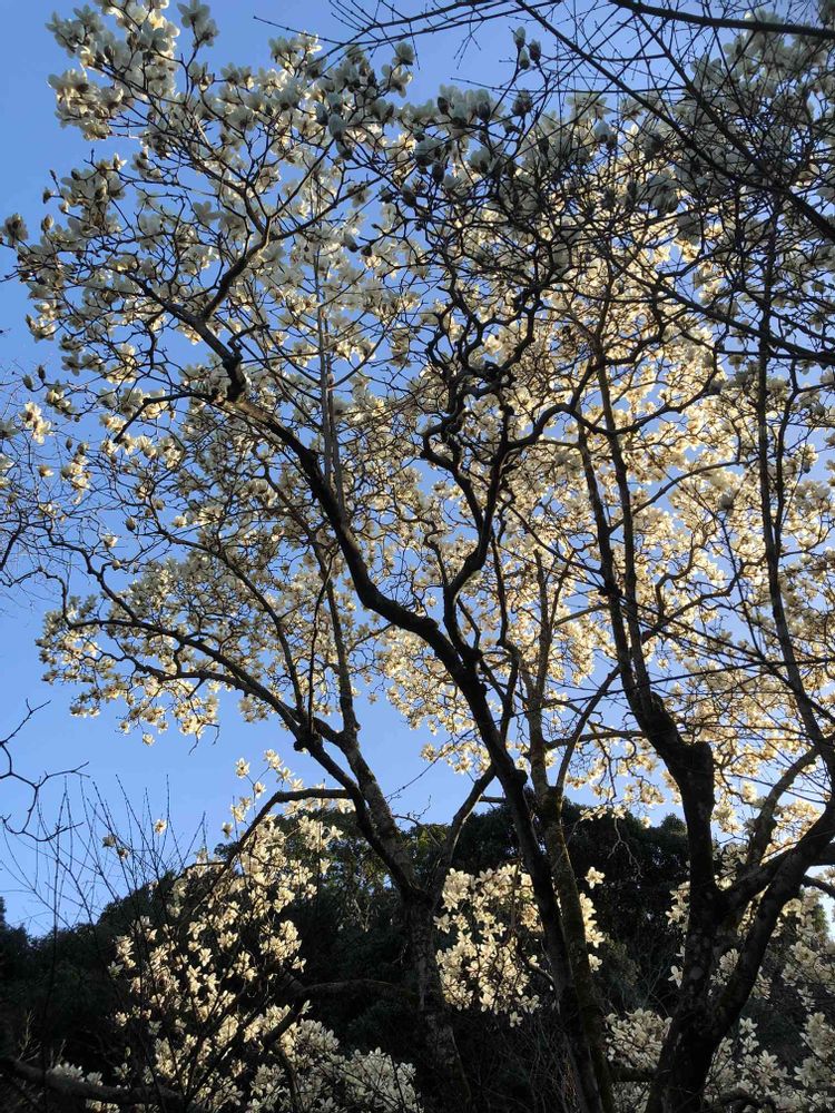 モクレンの大木で、大きすぎて花が見えにくい❗️