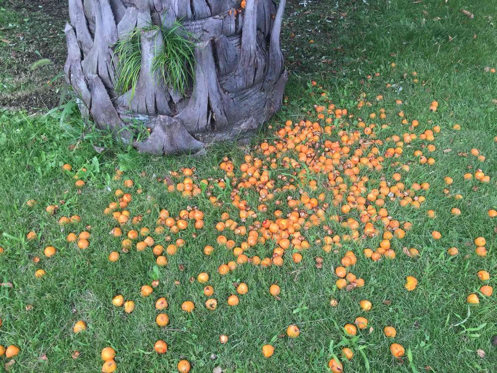 カナリーヤシ🌴かは分かりませんが、たくさんのオレンジ色の実をつけます😃