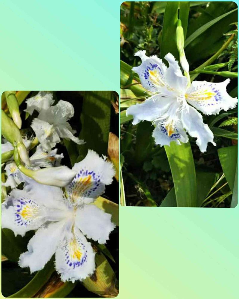 アヤメに似ている白い花を咲かせ、白地に青い斑点やその中心部が黄色に色付く美しい模様が素敵です🤗💕