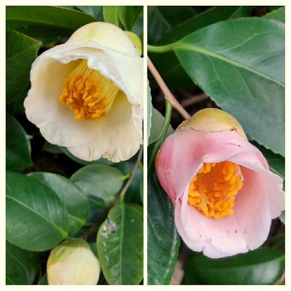 一本の枝から色違いの侘助が咲くのってとてもロマンチックですね💗