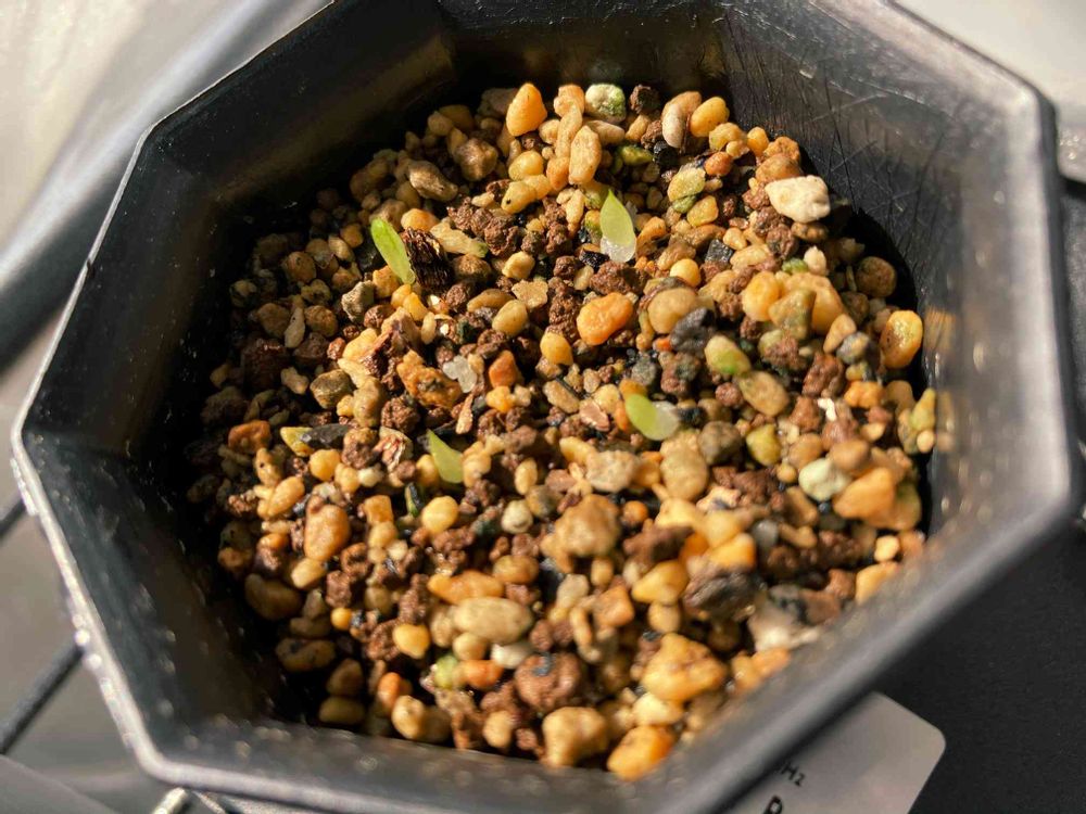 ヤフオクで買った、オブツーサ錦×べヌスタの種まいた!