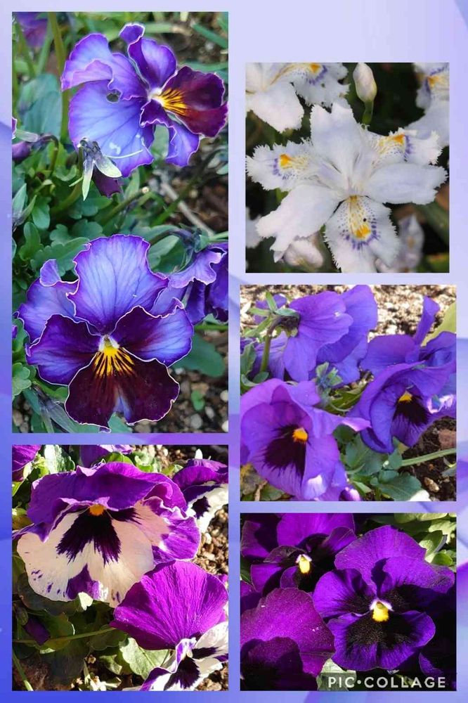 あまりアップに向かない写真でしたので他のお花とコラージュしたら青紫のパンジー大集合になってしまいました😅💦