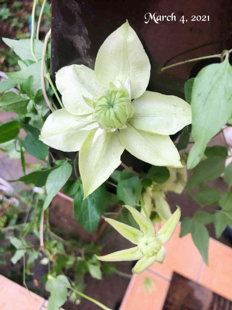 クレマチスの白万重が開花しました。今年はこんな早いの???