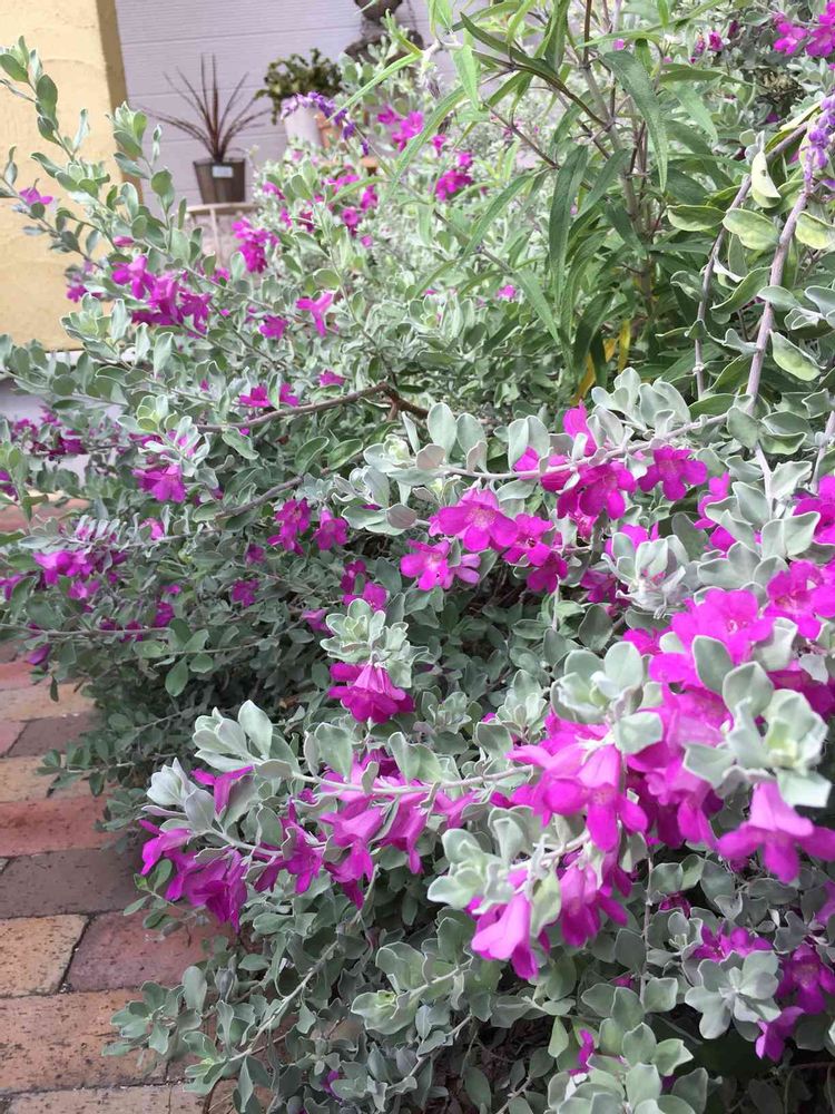 シルバーリーフに赤紫のお花、お隣はアメジストセージさんでしょうか?
