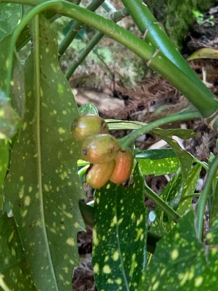 裏庭の斑入りのアオキに実が成っていた😳❣️