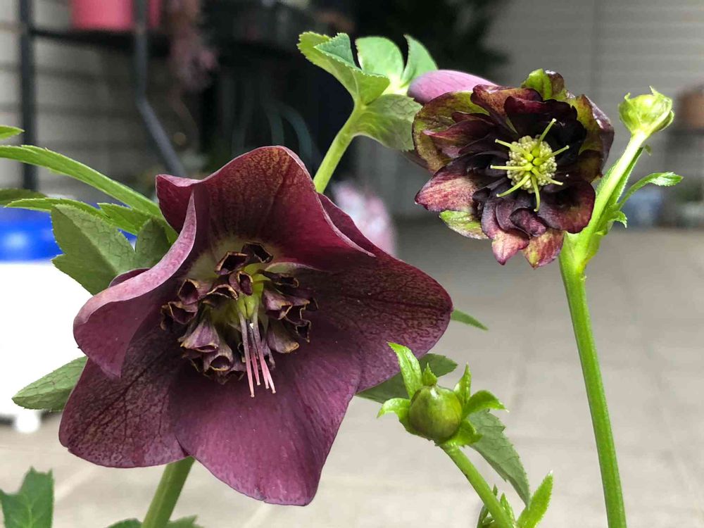 右側は一緒にお迎えした超ミニクリスマスローズ ダブル