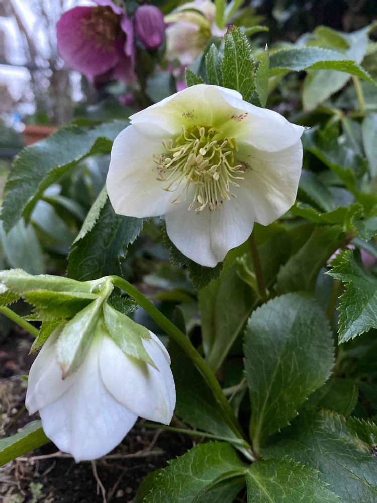 クリスマスローズがたくさん咲き始めました😊今日は白いのをパチリ😊12〜3年前、小さな苗ポットに入った5センチくらいの🌱クリスマスローズだよ、地植えしてみてねと言われ、どんな花が咲くのかな?からスタートしたクリスマスローズ。年々増えて、とってもうれしいです❣️