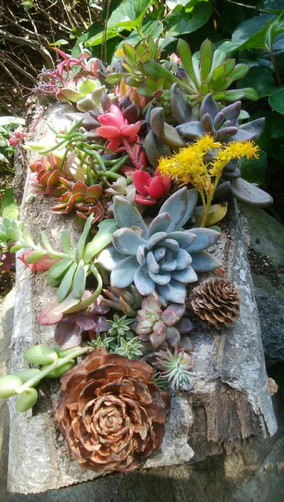 切り株に多肉ちゃん❣️ 楽しいですね✨