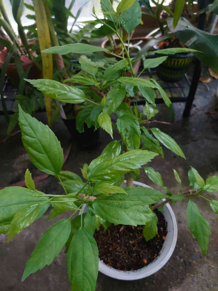 ハイビスカス達、今年は室内や温室に入れなかったので葉がすべて落ちました。