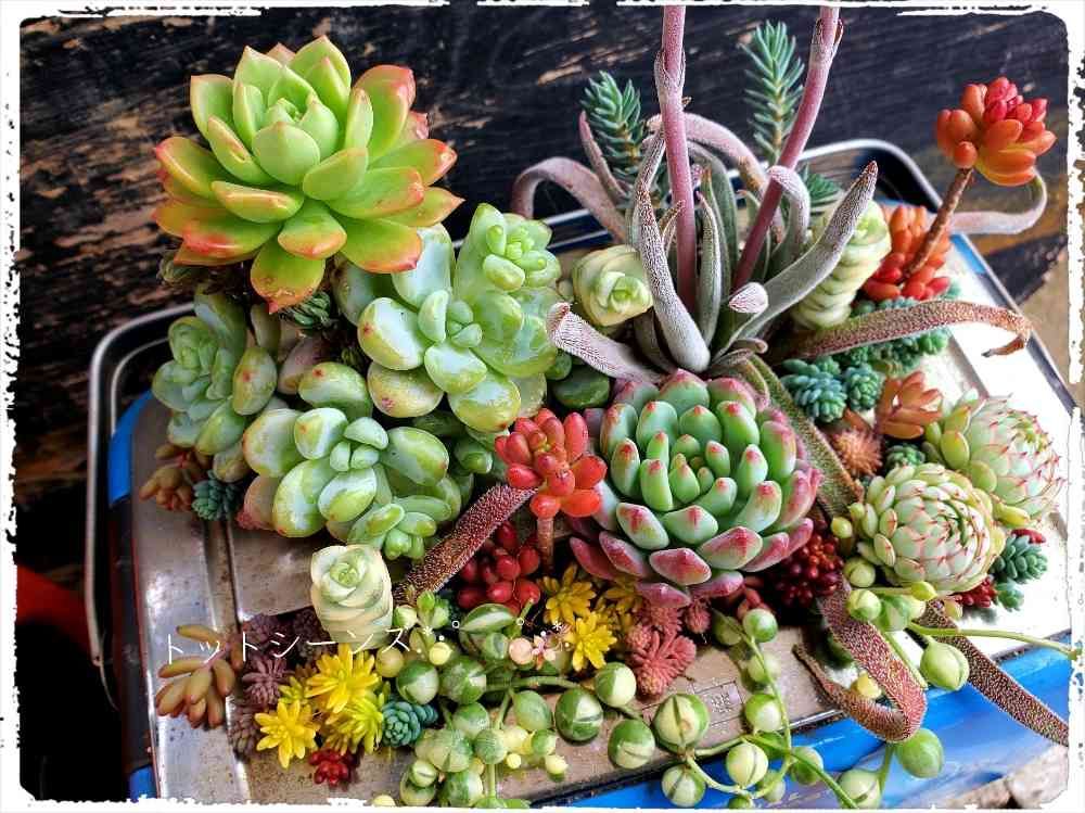 サンプルとしても使おうと思ってたので、本当はエケベリアメインのSNS映えする寄せ植え作るつもりが、、私が作るとこうなってしまうんだな。。。(:3_ヽ)_