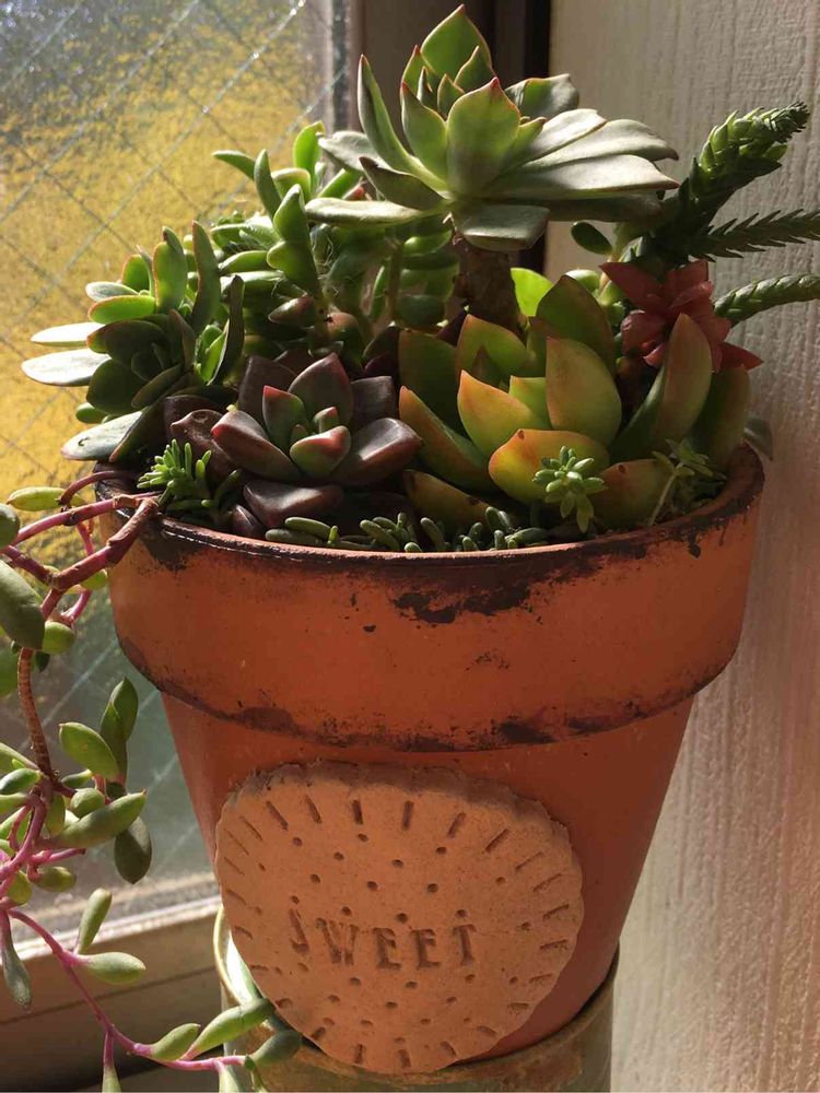 jun jun さんのビスケットリメ鉢に寄せ植え、可愛いネ〰(*^^*)❤