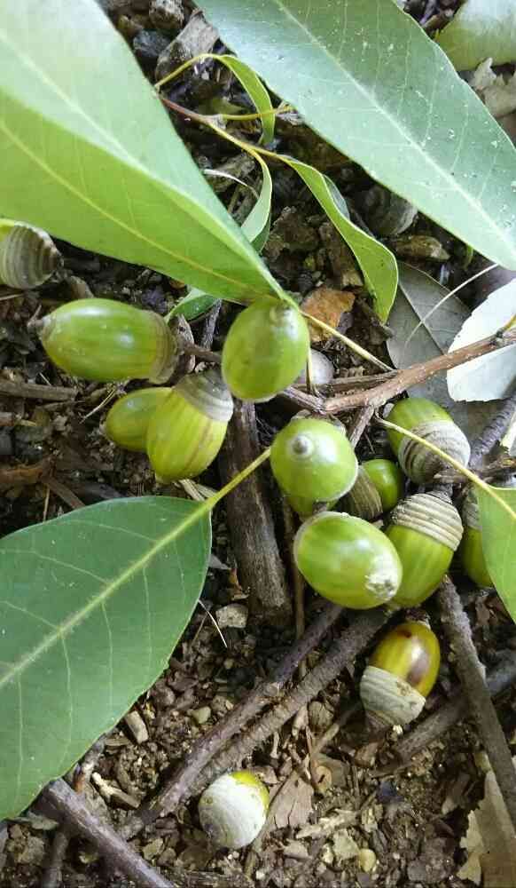 シラカシのドングリですね!私は昨日マテバシイのドングリを沢山拾って来ました。食べられるそうなのですが、手間がかかりそうなので孫のおままごと用にお土産にします。^_−☆