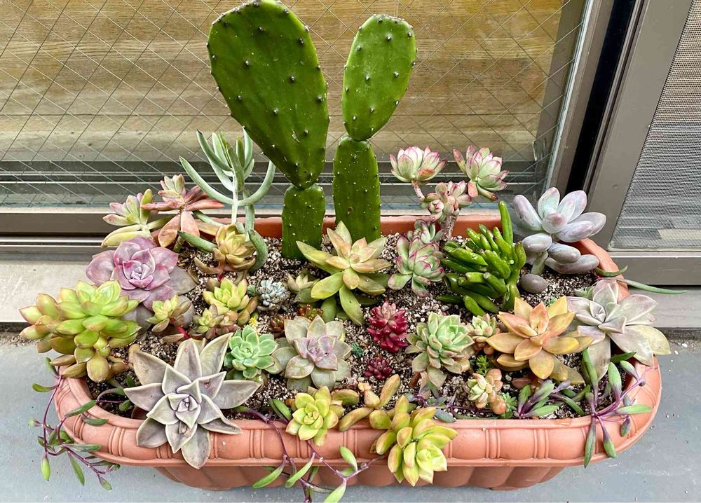 多肉植物なんてかわいくないとのたまう母の気持ちを変えるために寄せ植えを贈ろうと、プランターに植えまくりました😆🌷