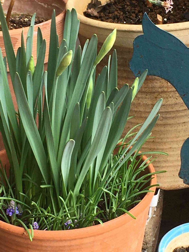 2年目球根植えっぱなしのスイセン 蕾が昨年より多くついているみたいだニャー(゚∀゚)💓