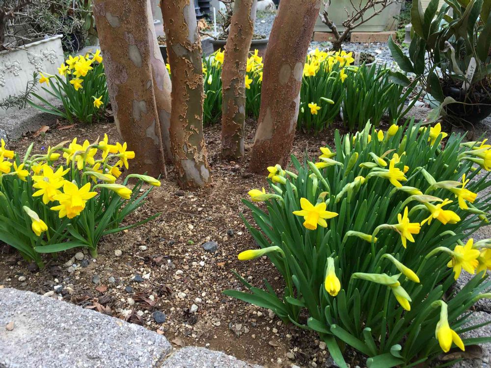 ヒメシャラの周りを水仙が花盛りに