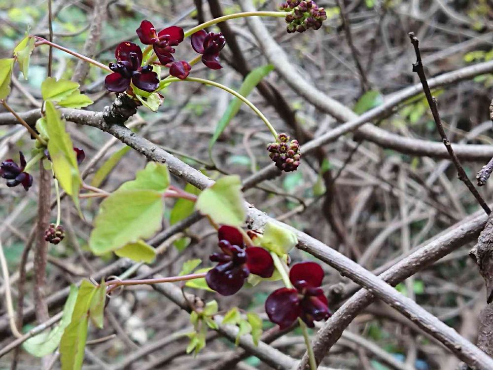 ミツバアケビ初めて見ました❗️雌雄異花で面白いですね🎵ワインレッドも綺麗です✨私も会ってみたいなー😆💕