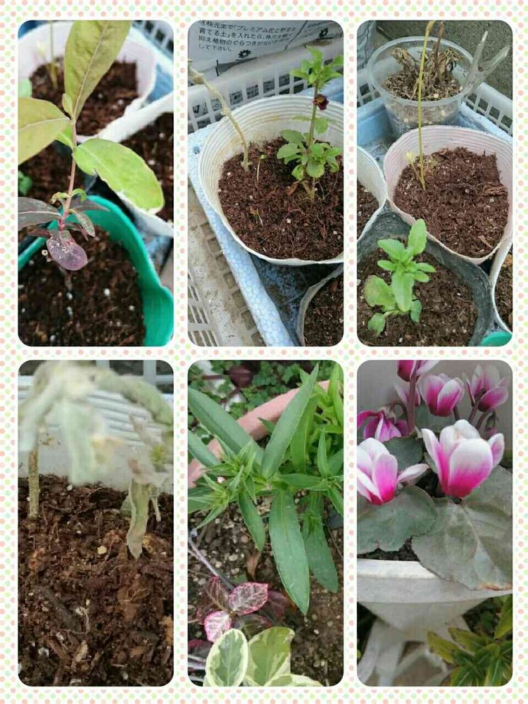 挿し木する植え床から、根が出たもの、ビオラの挿し木と他の植物も引っ越しました。