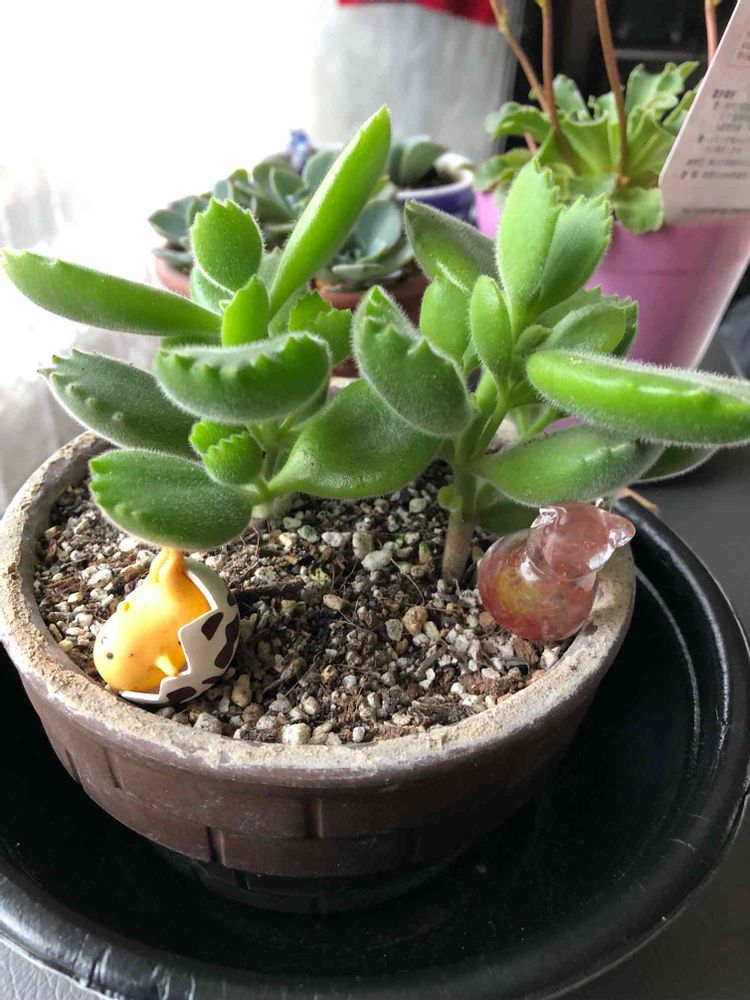 鉢植えなどを飾るセンスはないのですよ〜。寄せ植えなどしてみたいのに飾り気のなさに切実に悩んでます。他にも傾いて倒れそうな桜吹雪を支えたり、子株にのしかかりそうなエケベリアの葉などを持ち上げる子達がいます。実益のみで置いてます笑
