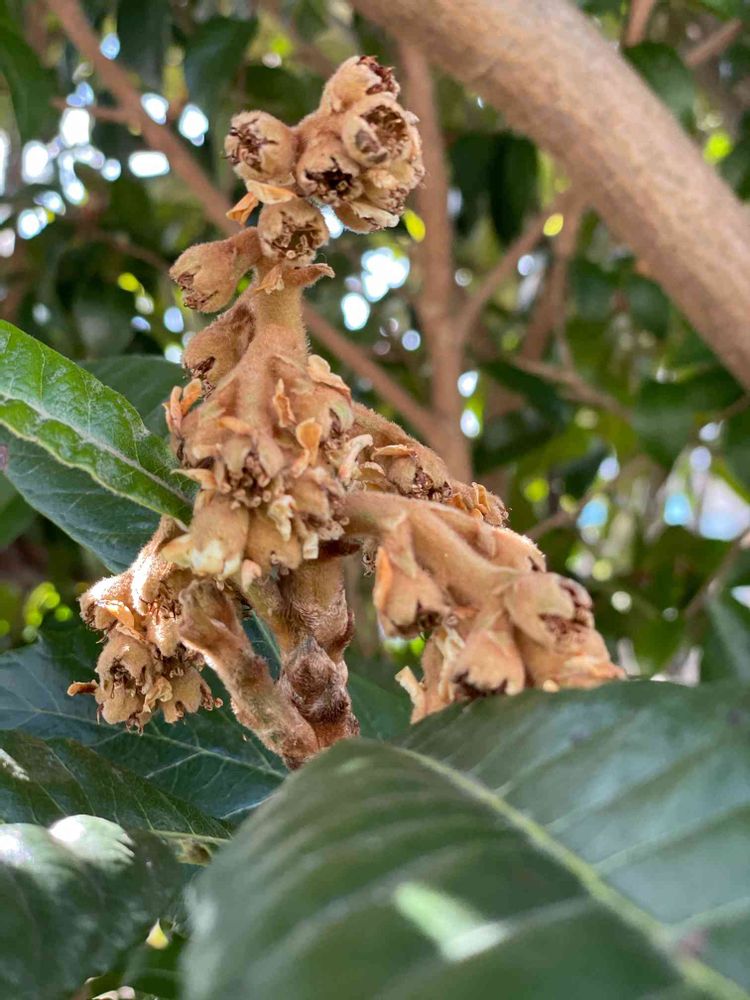 ビワの花の咲き終わり…今年は花見れなくて残念。