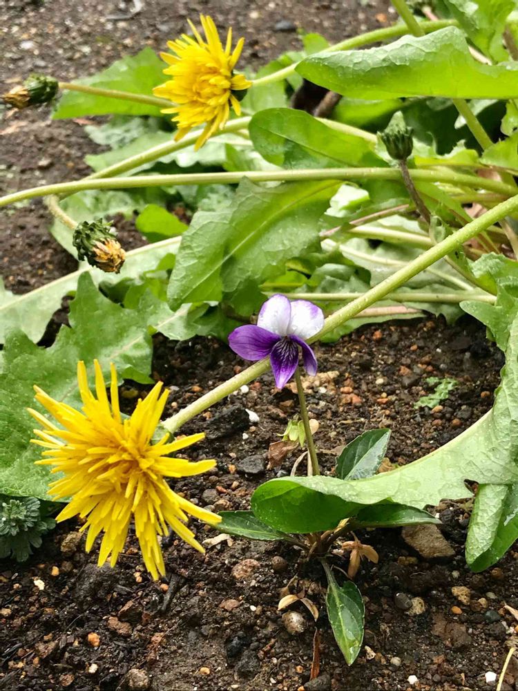 でも風がやんだら元通りの元気なたんぽぽとスミレに💙💛