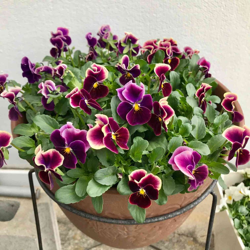 種蒔きビオラ開花4号の2/25upの姉妹達→3/5現在🌱種からあんみつさんもやっと鉢いっぱいになりました。相変わらず首が短いです🧐
