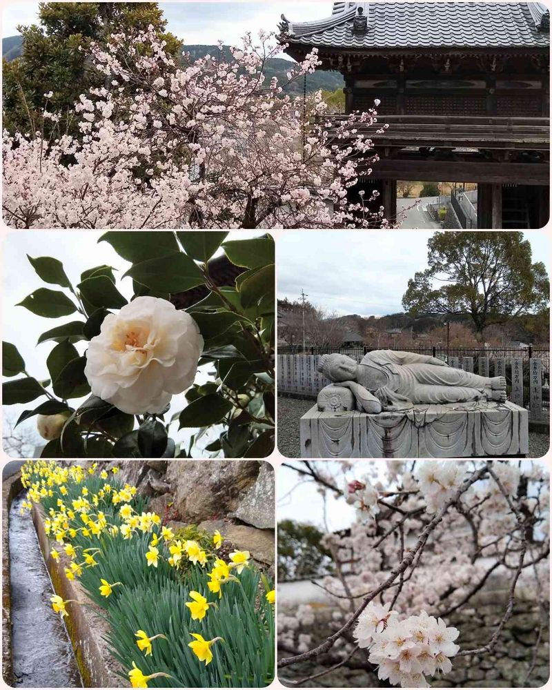 お寺は今お花で一杯です。特に孝子桜と涅槃仏は心に残りました。☺️♥️