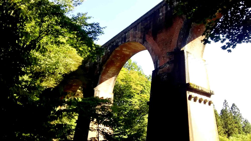 芸術と技術が融合した美しいレンガの4連アーチ橋で、川底からの高さが31mあり、我が国最大級。