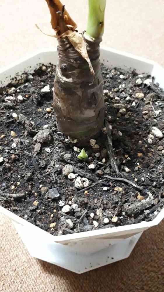 数日家を空けたときにクワズイモの新芽が枯れてしまいがっかりしていましたが、土の中から新芽が😆