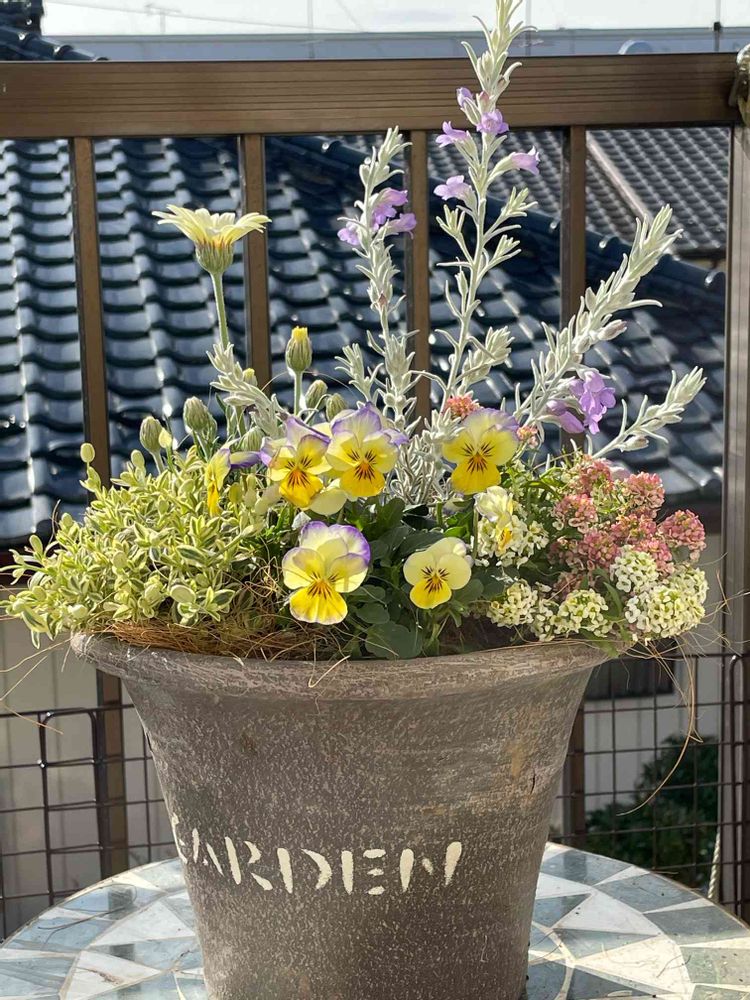 とても瑞々しい初恋の色の寄せ植えは、お年を感じさせませんね☺️