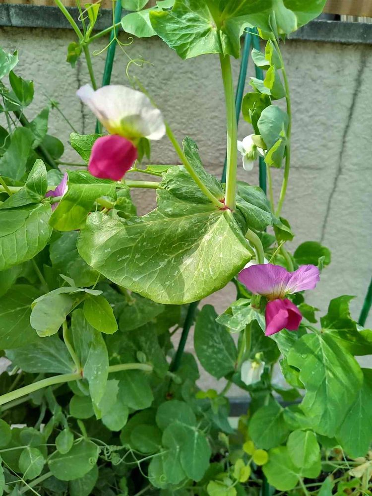 出勤途中で 、サヤエンドウの花が、咲いていました。